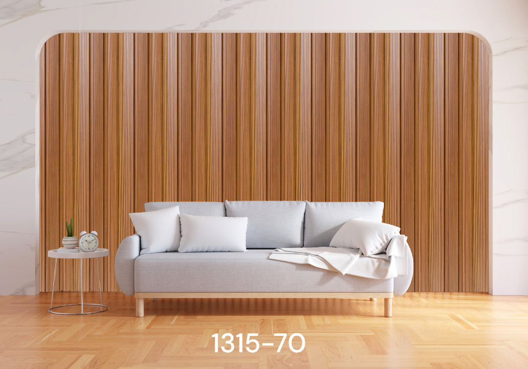 مظهر خشبي مخدَّد أو ناعم حسب التصميم، لإضفاء دفء ولمسة طبيعية على الحوائط أو الأسقف أو الأعمدة