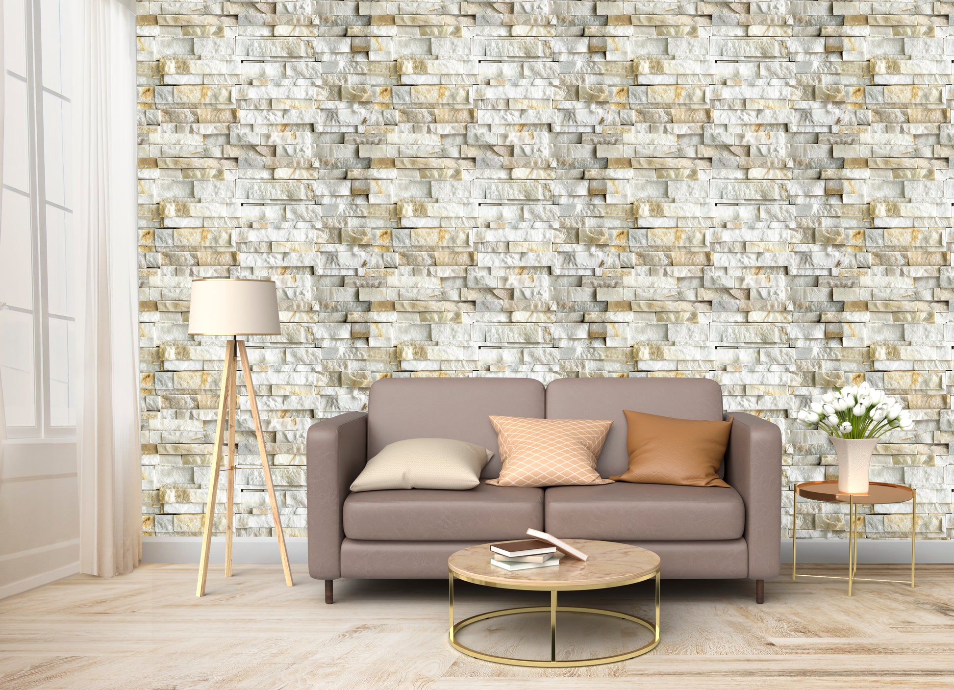 This elegant stone-designed wallpaper covers an area of 15 square meters, giving your home or office a natural, sophisticated touch that resembles real stone. Easy to install and clean, it's moisture-resistant and ideal for adding a modern and warm atmosphere to any room, such as a living room, bedroom, or even an office. The realistic 3D design adds depth and appeal to your walls without the expensive cost of traditional stone décor.